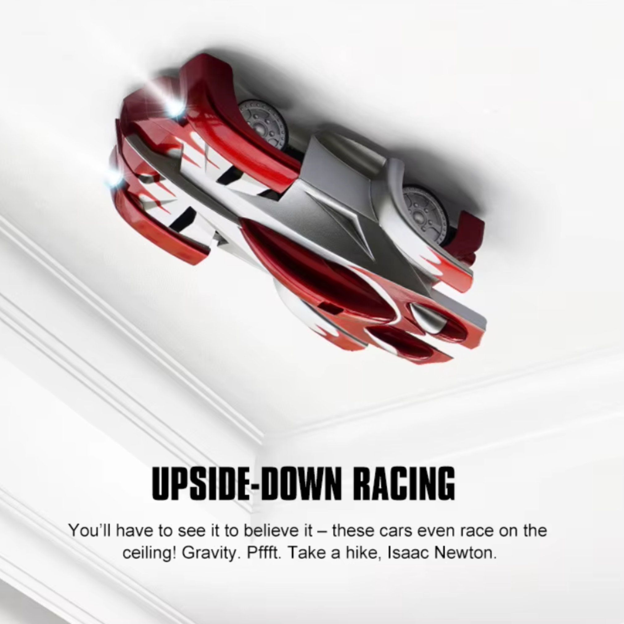Skift til “wall mode”, og se bilen suse lodret op ad væggen eller hen over loftet. -